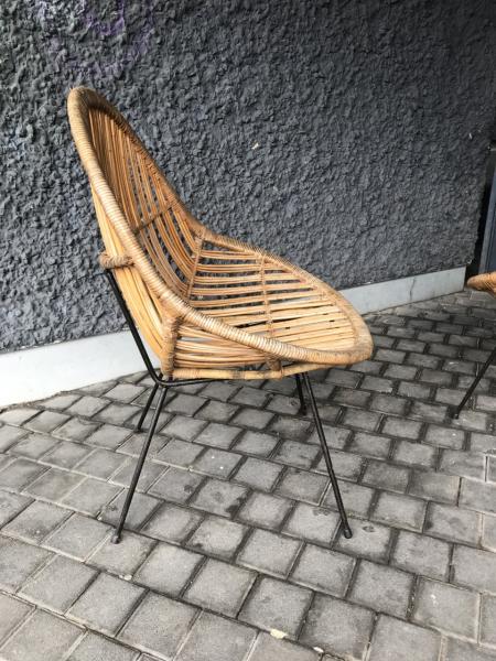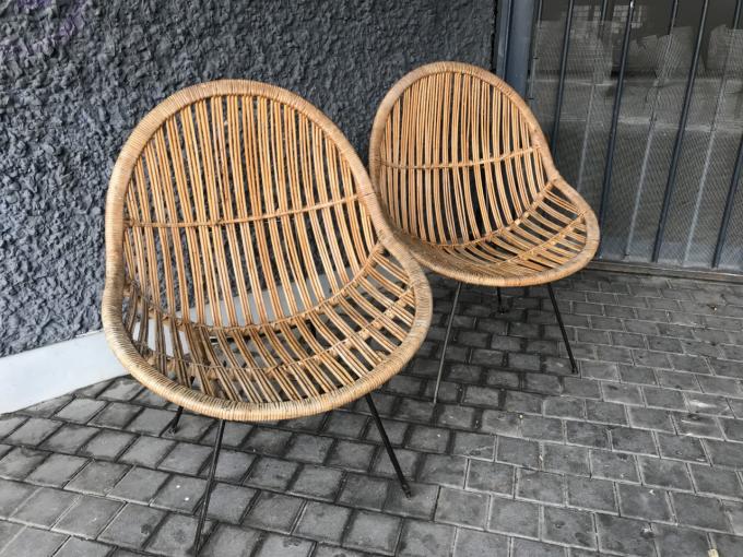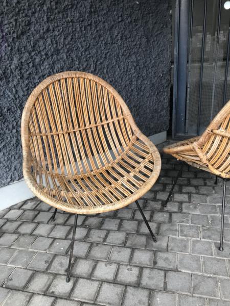 PAIR OF ARMCHAIRS. FIFTIES. FRANCE. WICKER AND IRON. 68X68X93 CMS.