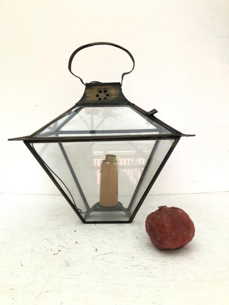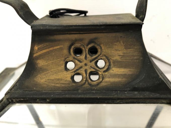 LANTERN. 50´S. BRASS AND CRYSTAL. 33X25X38 CMS