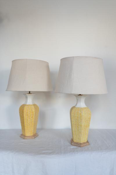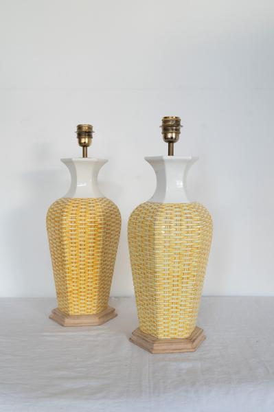 PAIR OF TABLE LAMPS. 70´S. FRANCE. CROCKERY. 20X44 CMS